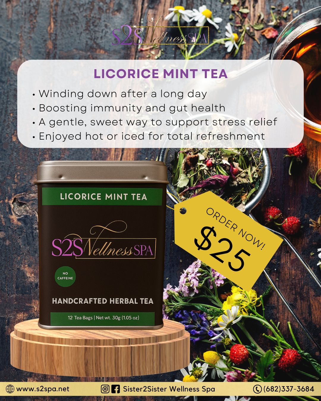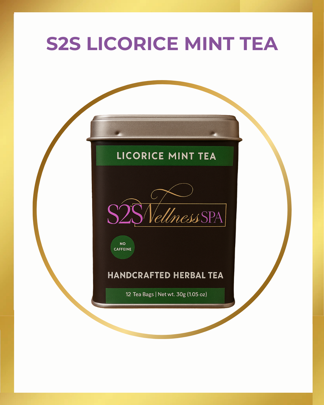 Licorice Mint Tea support your digestive health with a refreshing blend of licorice root, mint, and ginger. This soothing tea helps calm the stomach, ease bloating, and promote a balanced gut. Licorice root protects the digestive lining, while peppermint and ginger work together to reduce discomfort and support healthy digestion.